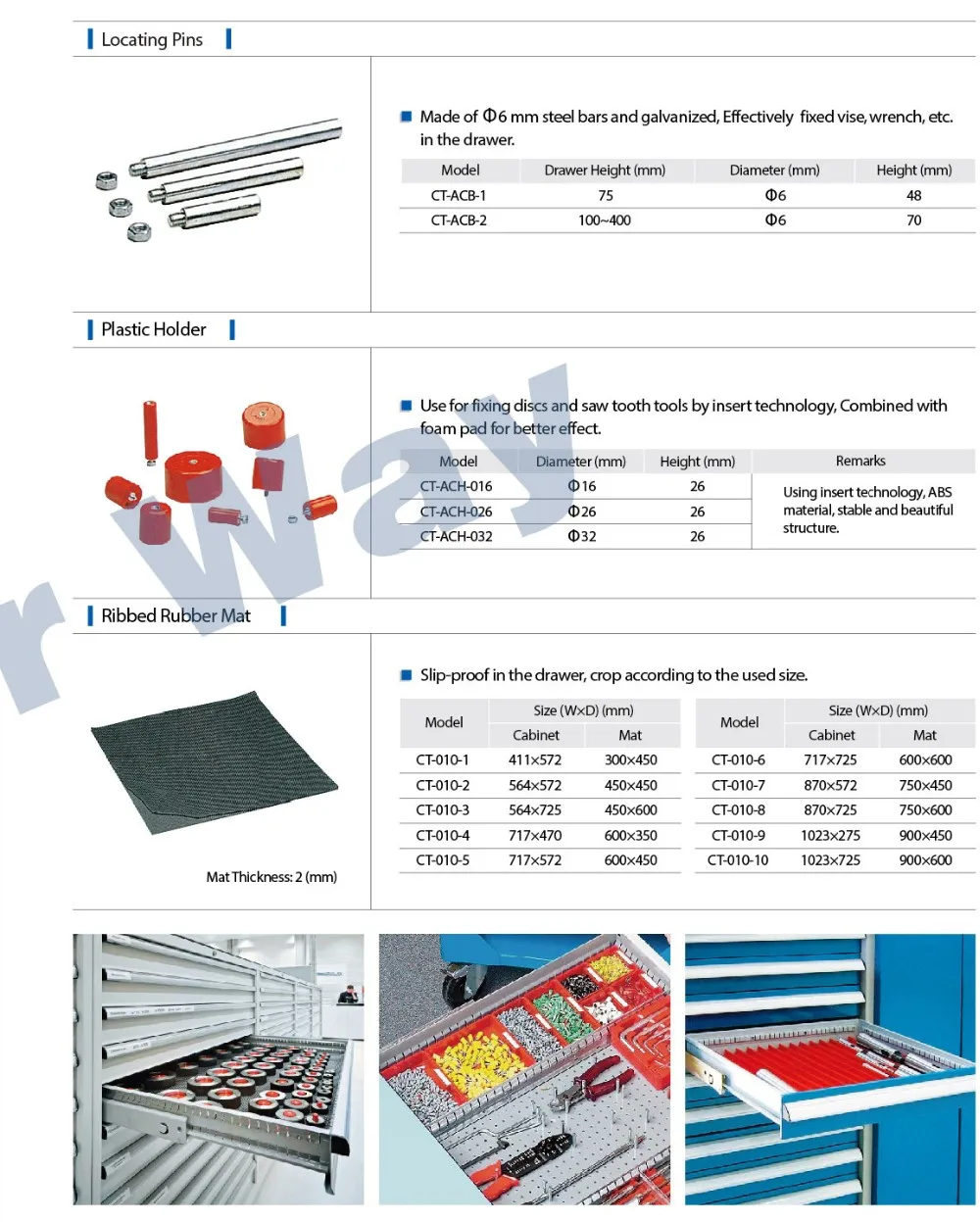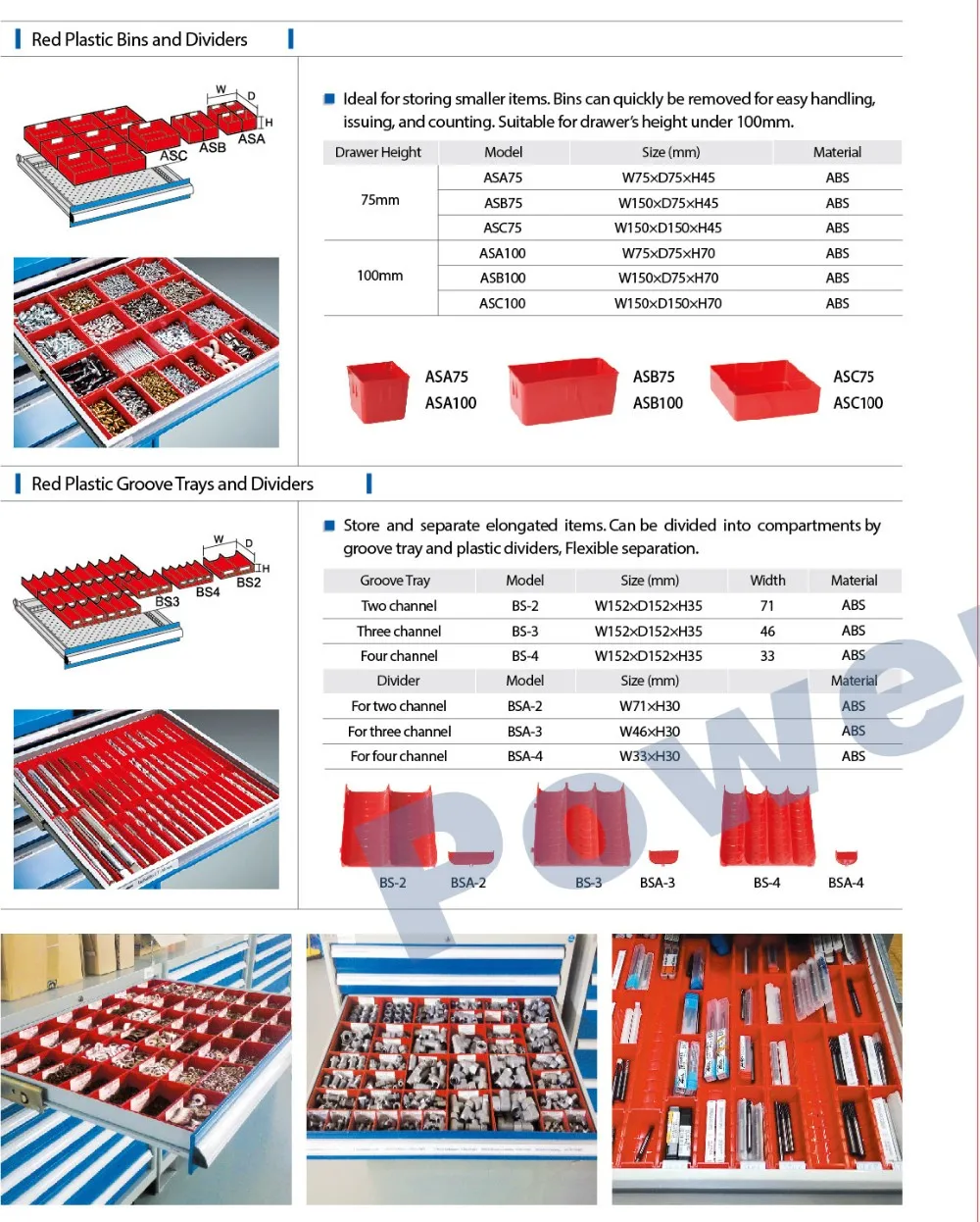 Drawer inside divider optional: steel dividers, red plastic bins, red plastic groove traysmetal locating pins, plastic holder etc.
