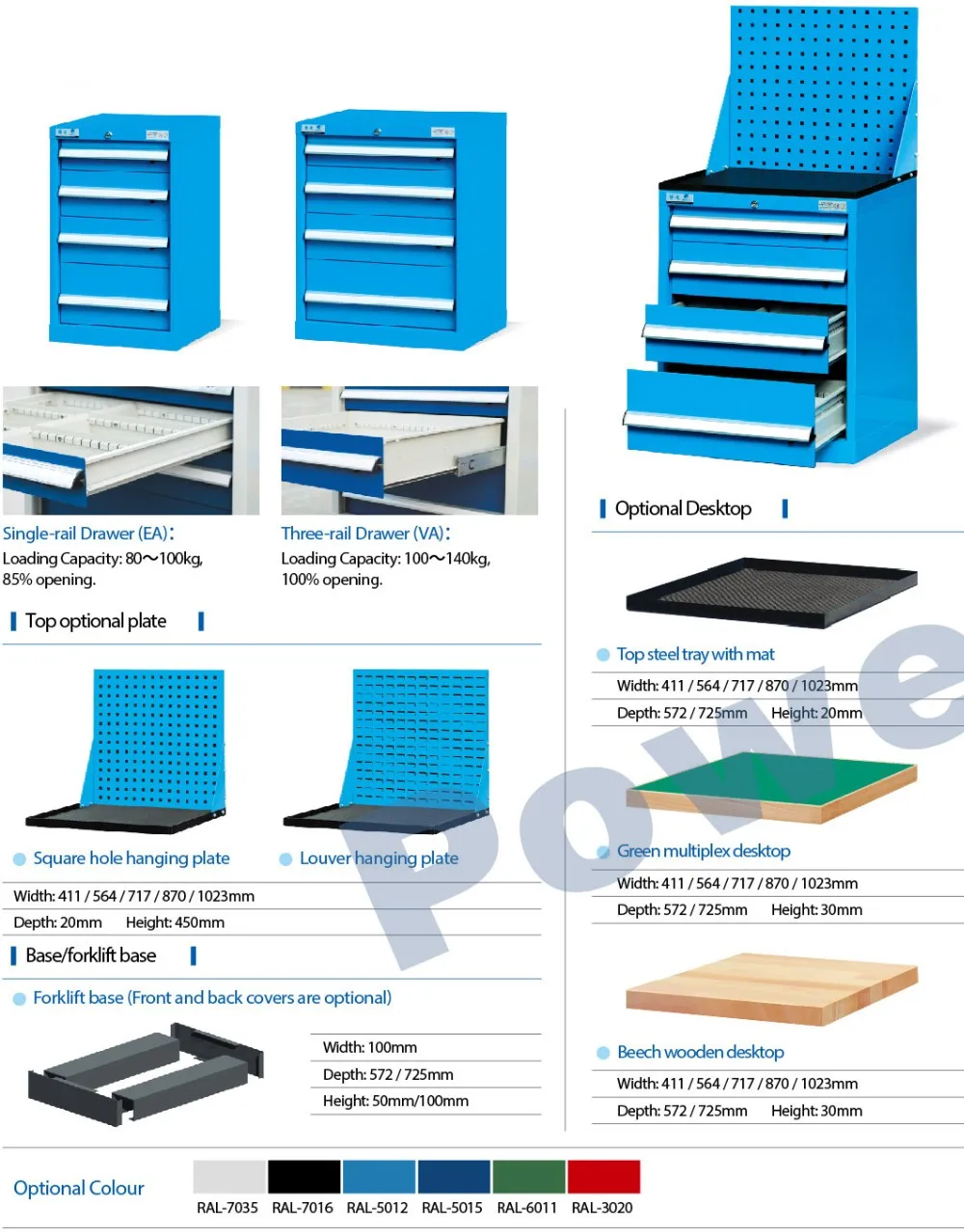 Drawer rail optional: Single-rail(EA),Double-rail(VA), Three-rail( A)