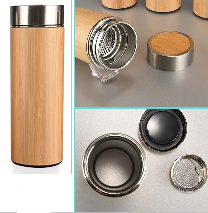 2019 New Design bamboo Insulated Water Bottle high quality bamboo vacuum flask thermal coffee mug stainless steel