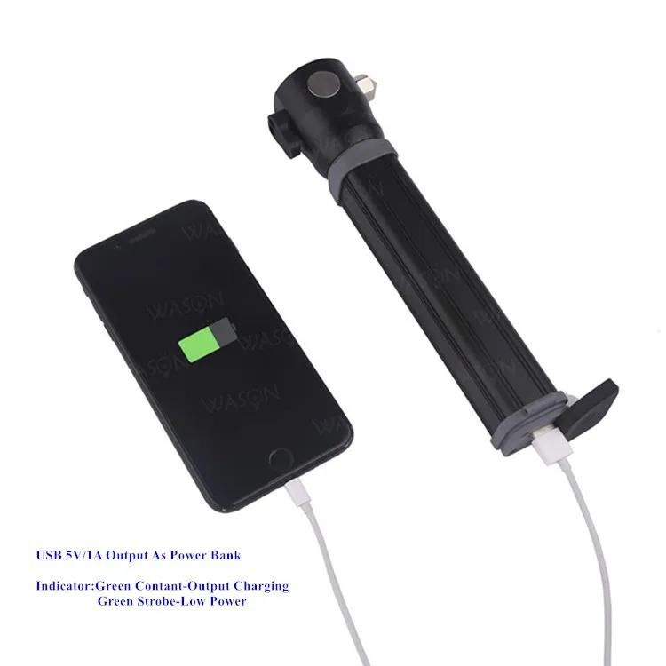 WASON HIGH QUALITY PROFESSIONAL SOLAR RECHARGEABLE EMERGENCY RESCUE FLASHLIGHT WITH WINDOW BREAKER HAMMER AND CUTTING KNIFE