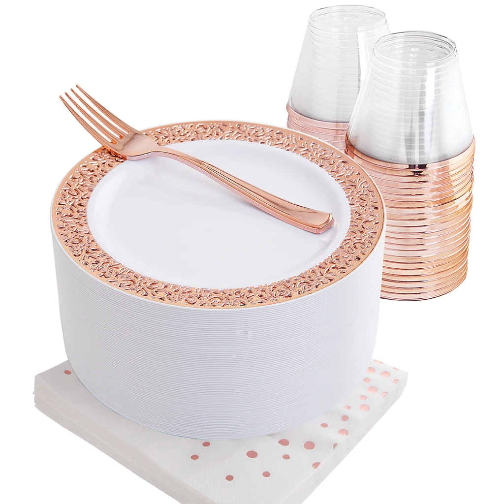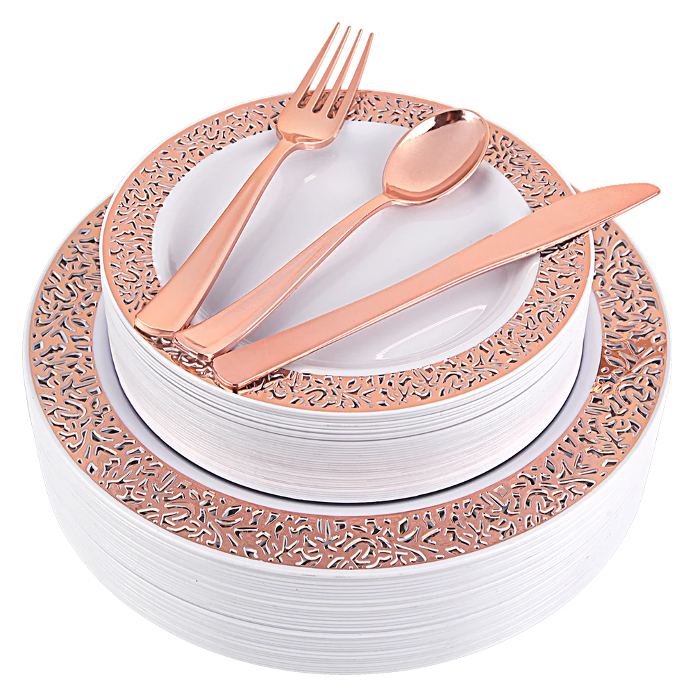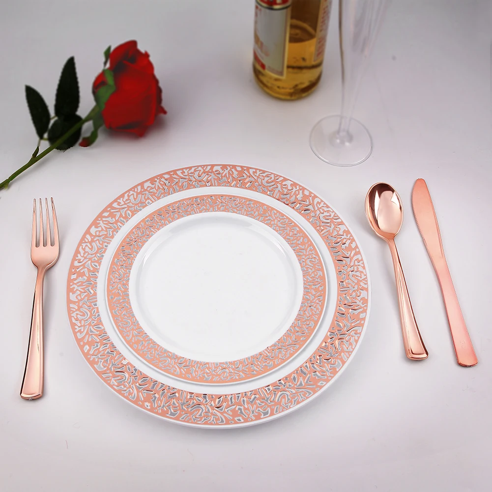 ED01 | Plate | PS | White with Rose Gold Lace Design | 21.7g | 7.5" | |||||