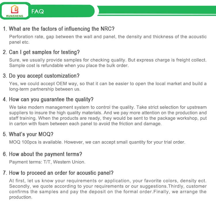 Suzhou Runsheng is a Manufacturer who developes polyester fiber acoustic wall and ceiling panels with exceptional acoustic control unique design. Runsheng's acosutic panels are customizable to deliver creative freedom for architectures, interior designers and building owners. For more than 5 years, Runsheng has worked closely with customers to provide a special look that exceeds acoustical aesthetic and sustainability requirements.
