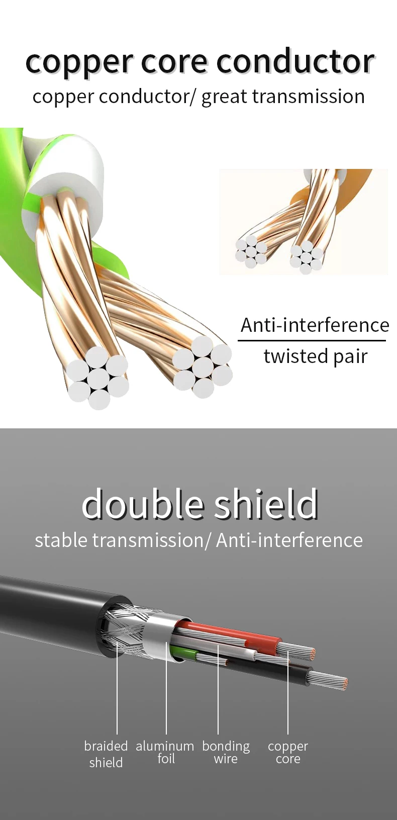 6,Double shielding can greatly reduce the electromagnetic and radio interference and ensure reliable data transmission.