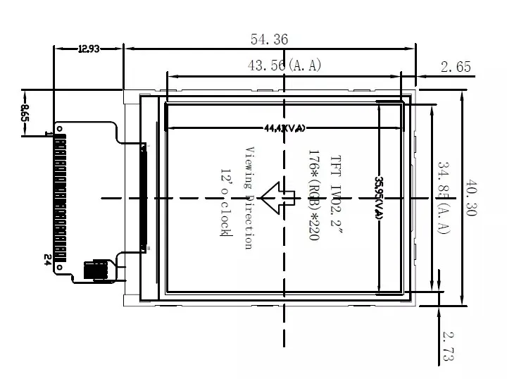 2.2inch 176x220 TFT GC9203 TN TFT LCD Display Module | ||