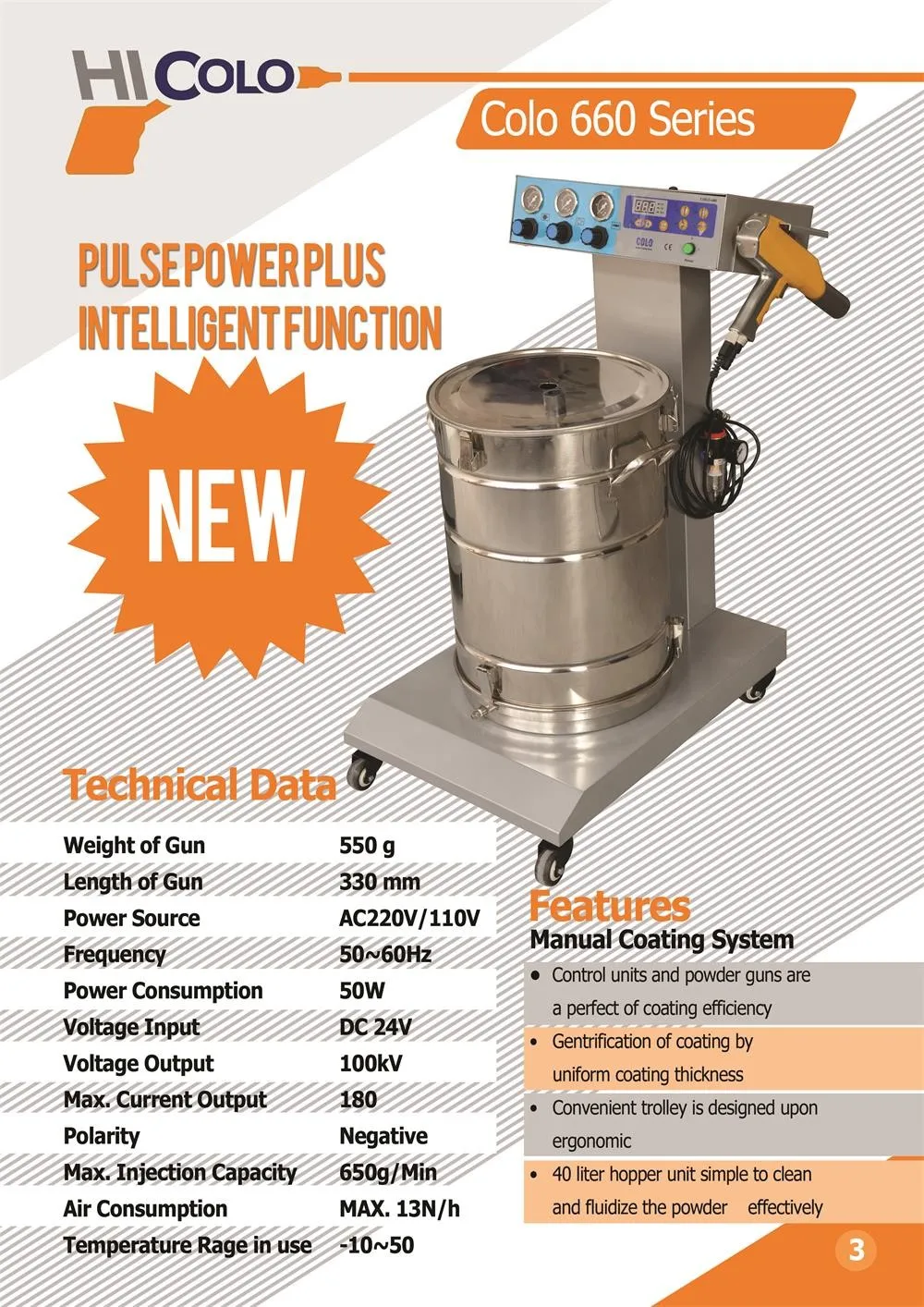COLO-660 Electrostatic Powder Manual Coating Equipment,is designed exclusively for electrostatic coating with powder.