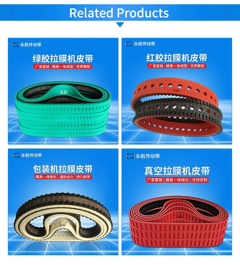 Our main products are Sausage Timing Belt ,film pull belt ,rubber belt, transmission belt,triangle V belt etc.