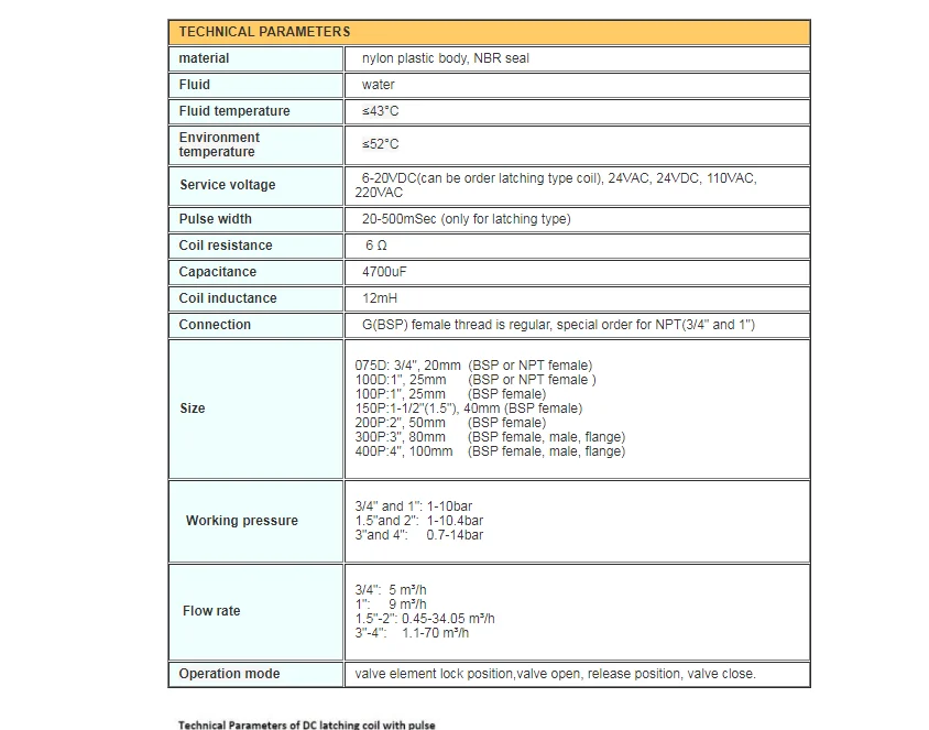 Water treatment solenoid, normally closed, coil AC24V, Self-holding type coil DC6-20V (Please specify when ordering)