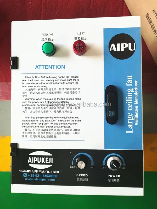 Large-scale energy-saving ceiling fan electrical control cabinet, buit-in overload overheating protection, once the accident, it will automatically cut off the output power to ensure product to be safe, human control knob, free to adjust the wind speed to meet the ventilation needs.