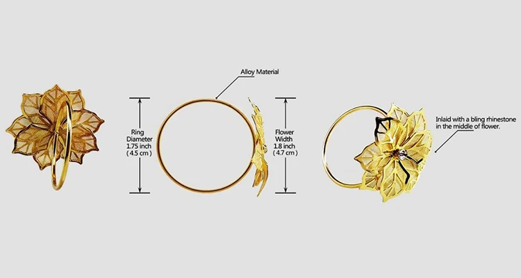 - Custom Luxury Weddings Rose Gold Flower Rhinestone Napkin Rings