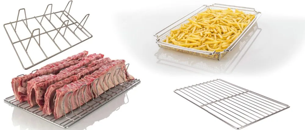 A cooling / pan grate rack fits inside the pan to help drain foods while keeping them from sticking to the pan. Simply remove the cooling rack / pan grate to toss out food crumbs and refuse, and it's easy to wash away grease from the stainless steel pan.
