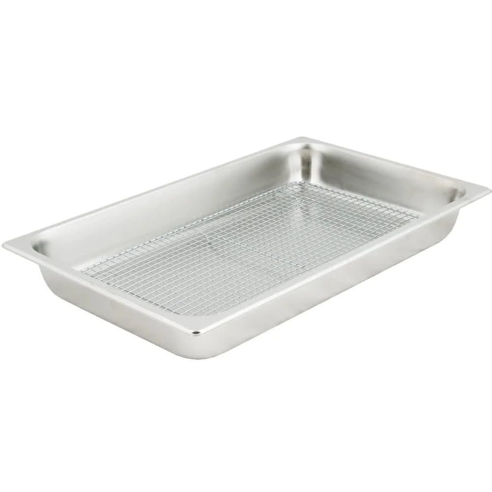 This set features a 18/8 24 gauge stainless steel standard weight food pan with straight sides. Together with the chrome-plated cooling / pan grate rack, it delivers long-lasting convenience to help your operation run smoothly and to keep guests and customers satisfied and well fed. Plus, because of the construction, the set is easy to clean and maintain, even with heavy use.