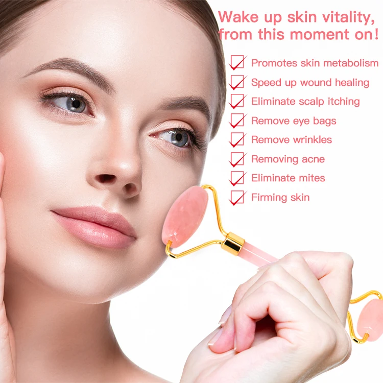 Amazon best sellers jade face massage roller and gua sha theropy de-puffing jade roller rose quartz