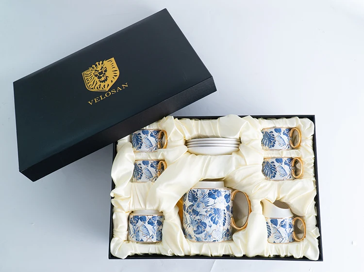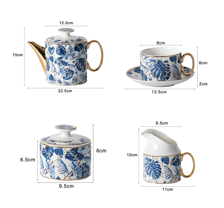 Name | European Royal Porcelain Tea And Coffee Set Luxury Blue Banana Leaf Design Bone China Tea Cup Set | ||||||