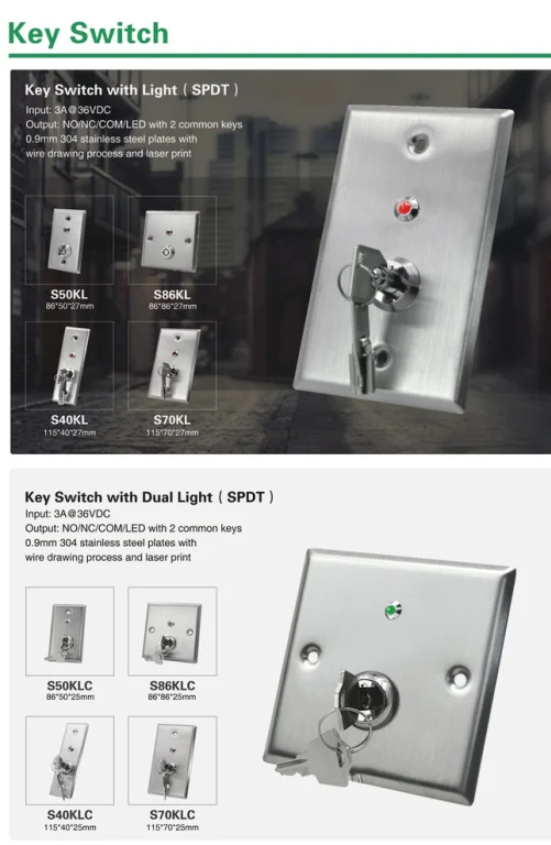 Keyswitch is very common and frequently used in access control system, it is often used in public, banks, small, medium and large sized enterprised, department stores and residences etc.