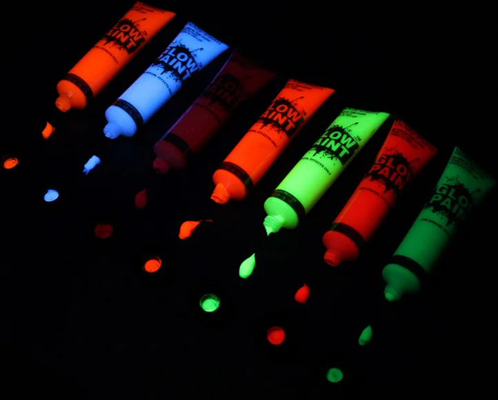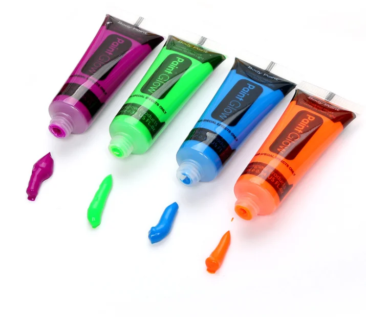 Non-toxic safe soft tube neon fluo face body paint in UV light blacklight for costume party makeup paint