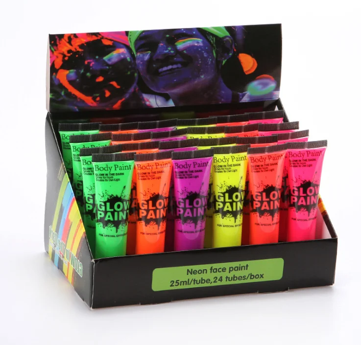 Non toxic safe soft tube neon fluo face body paint in UV light blacklight for costume party makeup paint