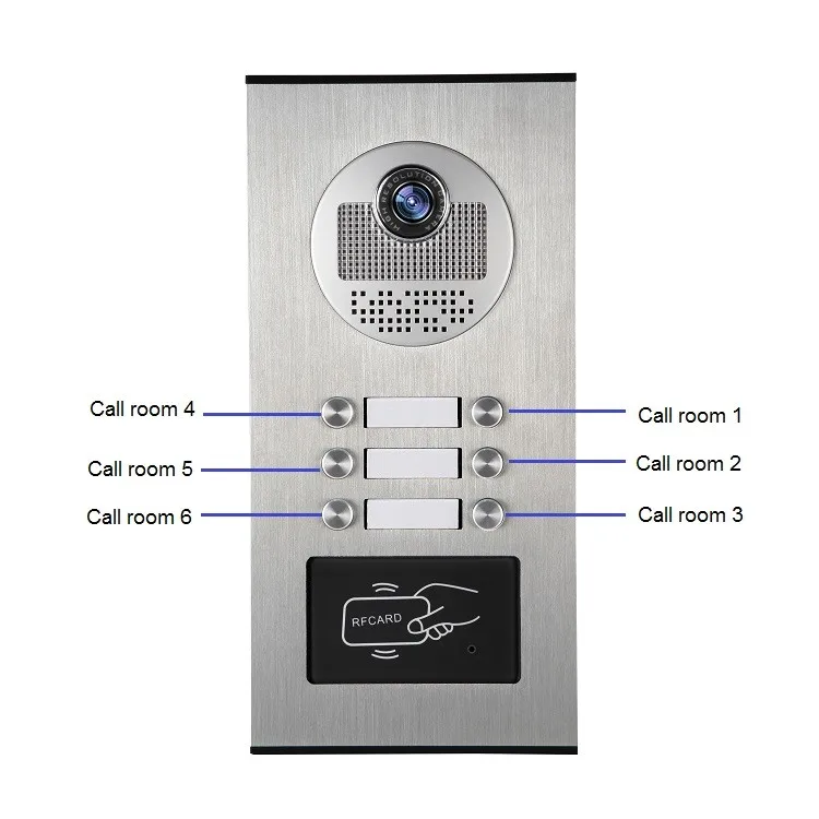 2 -6 apartments family | Up to 12 buttons,one button control one monitor.Also you could add room number on outdoor camera.It is more convenient for the visitor or courier to talk the right person. | |