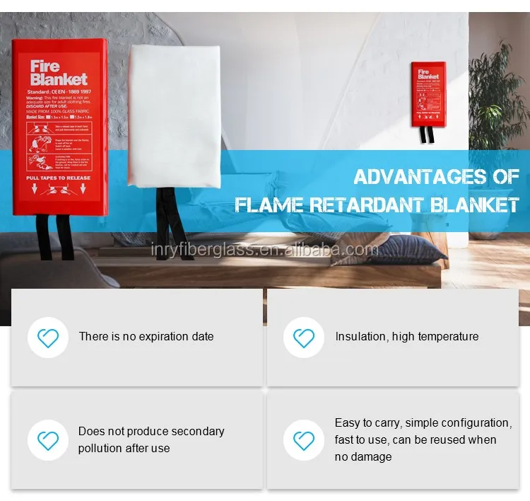 Fire blanket is a specially treated glass fiber fabric which is very soft,smooth and does not irritate skin. The thickness of the fire blanket is 0.4mm. In an emergency, it is aperfectivecovering, isolating our body from the heat source during an escape. Fire blanket is easy to carry & store and simple to use. It is the best choice for emergency, fire protection and fire fighting. Ideal for use in kitchen, hotel,garage, gas station, laboratory, BBQ etc.
