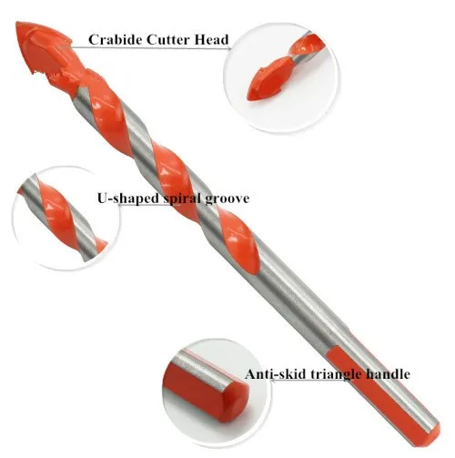 Product Name | Orange color Three-Flat Shank Carbide Tip Multi Material Drill Bit for glass Ceramic Porcelain Tile Brick |