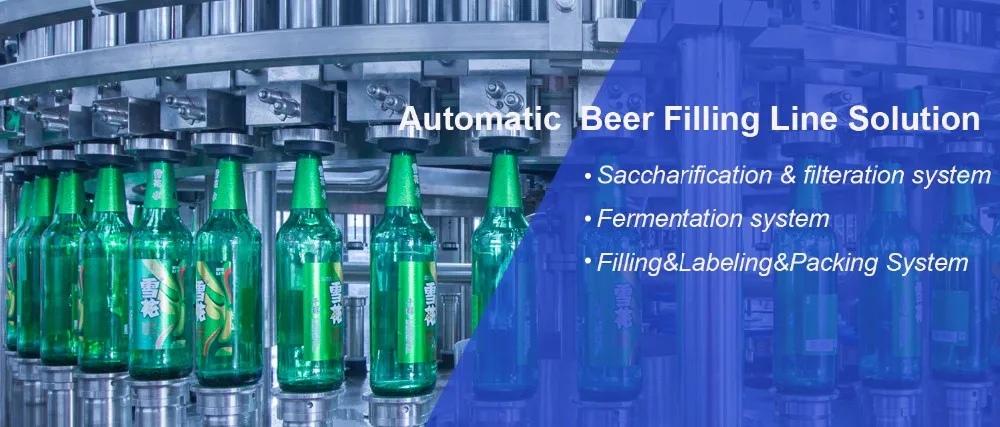 Beer cold glue labeling system ,beer film packaging machine & carton box packing machine ,also can supply the beer processing system ,like saccharification system & filteration system ,and fermentation and storage system