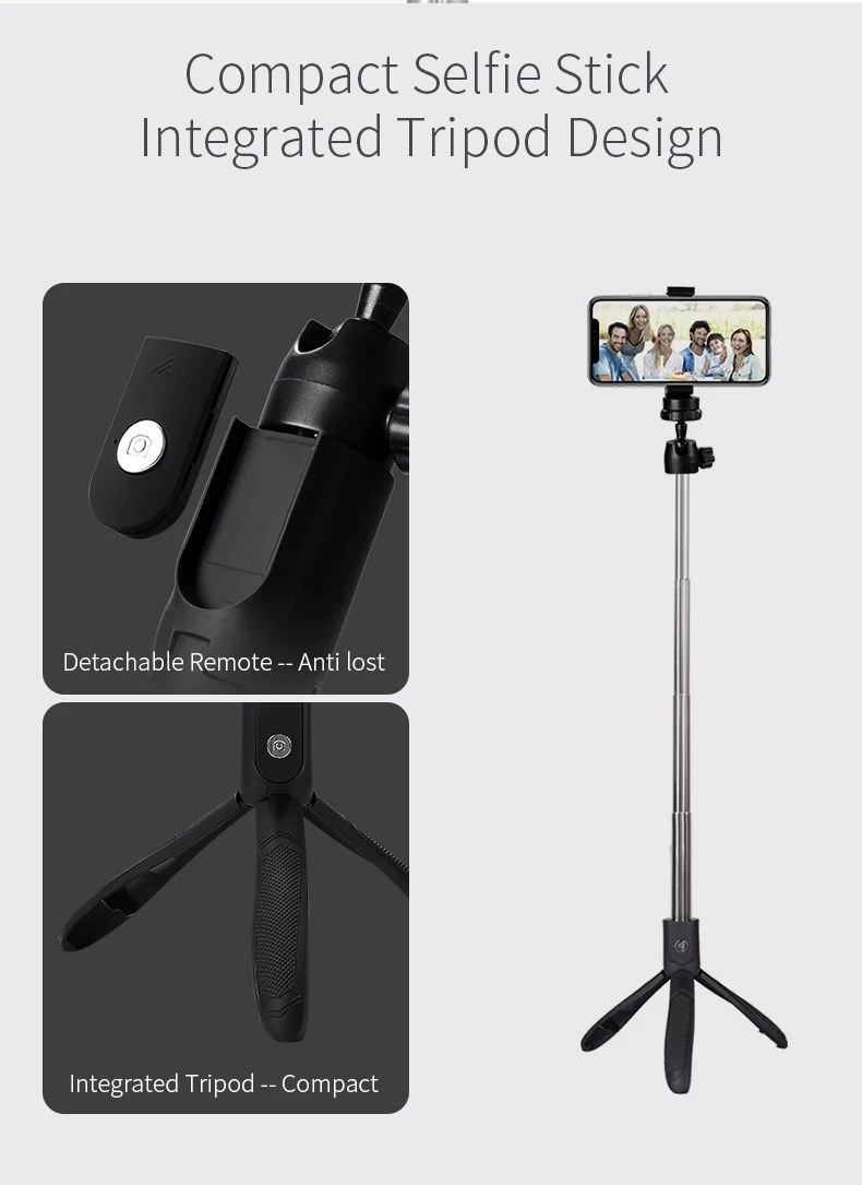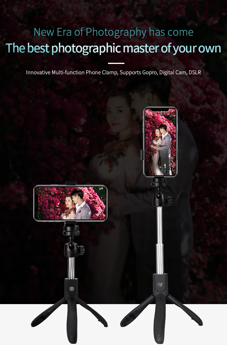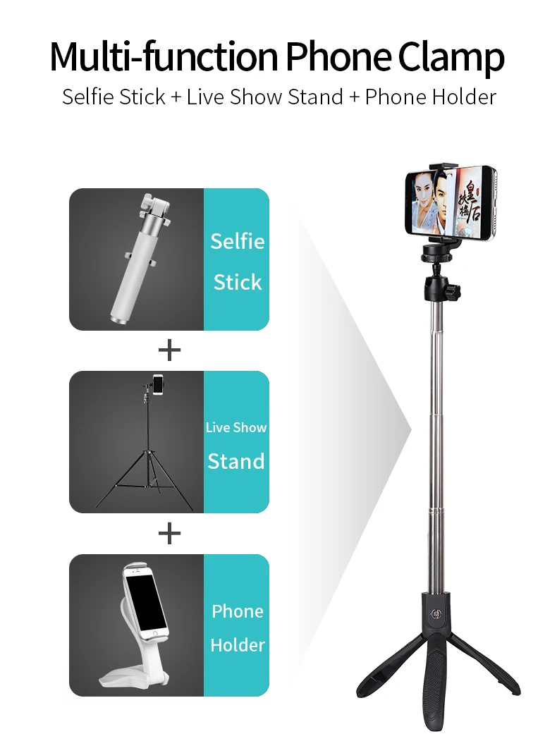 2 in 1 selfie stick and tripod, portable Bluetooth wireless control and easy to use.