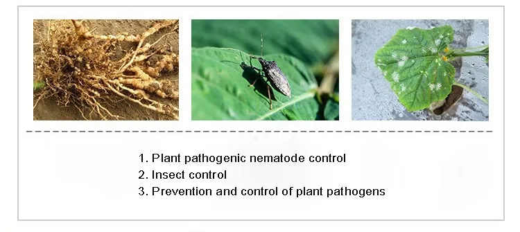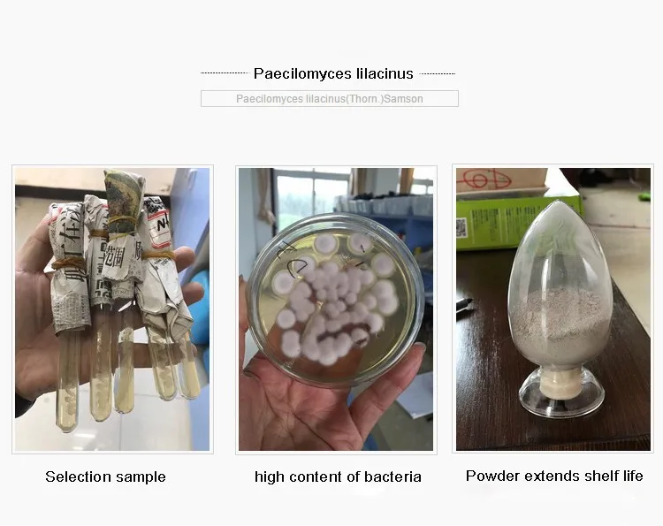 Paecilomyces lilacinis is an internal parasitic fungus, which is an important natural enemy of some plant parasitic nematodes. It can parasitic on eggs, larvae and female worms, and can significantly reduce the harm of plant nematode diseases such as root knot nematode, cystode nematode and stem nematode.