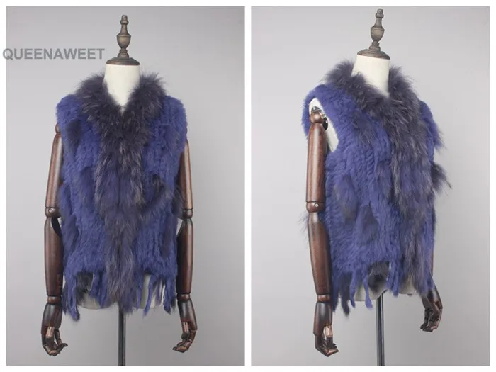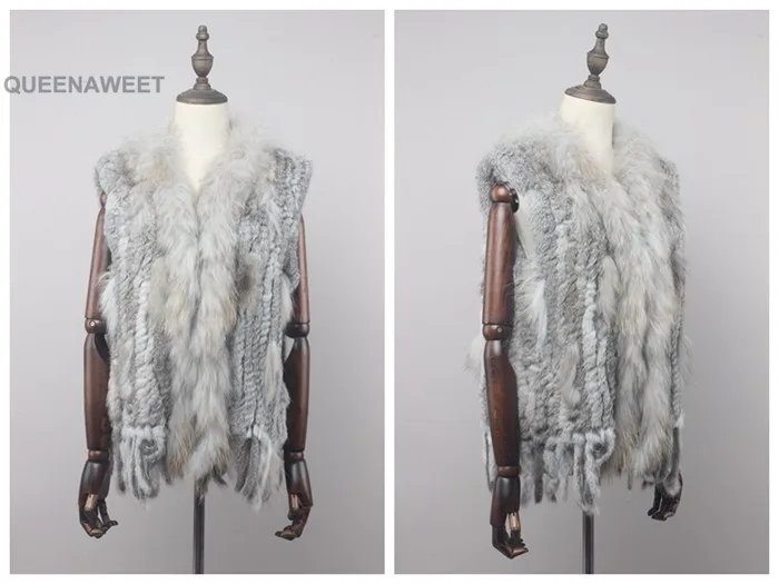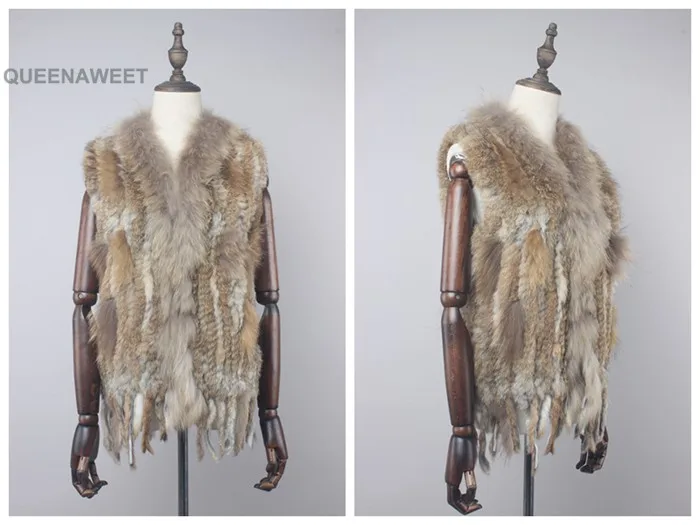 Factory wholesale Knitted Rabbit Fur Vest Women' Real Fur Gilet Fashion Style