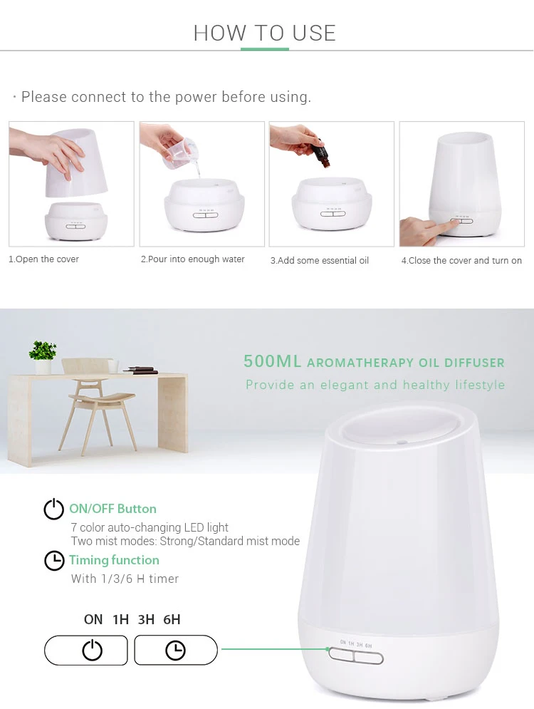 | Function | 1.fresh air 2.aroma-therapy 3.clear 4.mosquito repellent 5.cool mist 6.decoration |