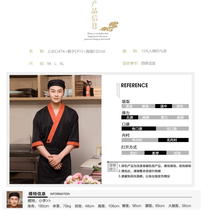 This is a classic hit Japanese chef's style, stylish and comfortable to wear, concise and easy, full of day type style
