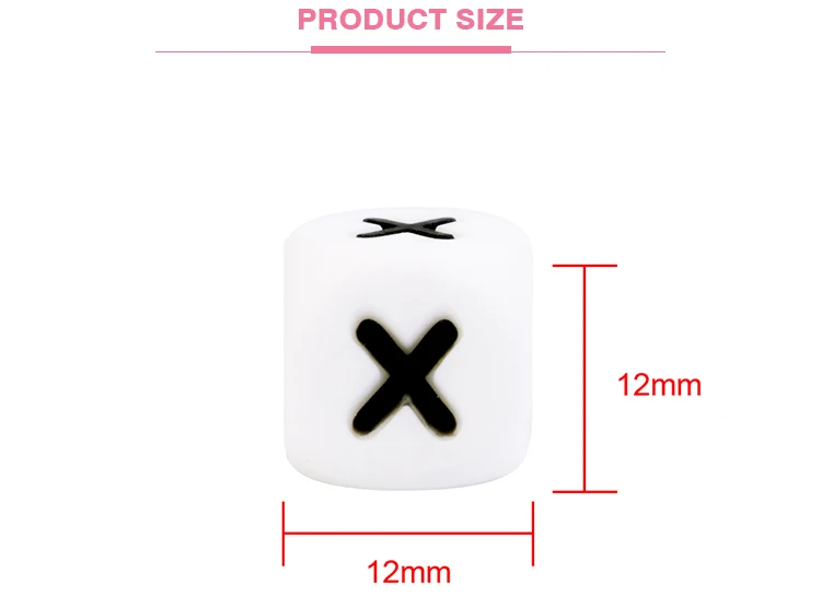 12MM BPA Free Food Grade English Russian Letters Square Soft Silicone Chewing Baby Teething Alphabet Teether Beads