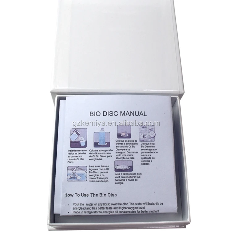 13.Enhances potency of food supplements-increasing the hydration levels of the drinking water taken with the supplements. 14.The healing power of disc has proven to amazingly balance the 'yin' and 'yang 'and cure various syndromes such as autism, diabetes, high blood pressure, high level of cholesterol, high level of uric acid, migraines, pains, swellinga and inflammation, rheumatism,stiff neck, leg cramp, stomach ache, headache, asthma, kidney problem, allergy, jet lag, fatigue, muscular pains, stresses, and more...