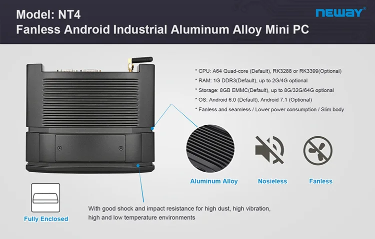 Fanless A64/RK3399 Industrial Aluminum Alloy Android 7.1 Mini PC