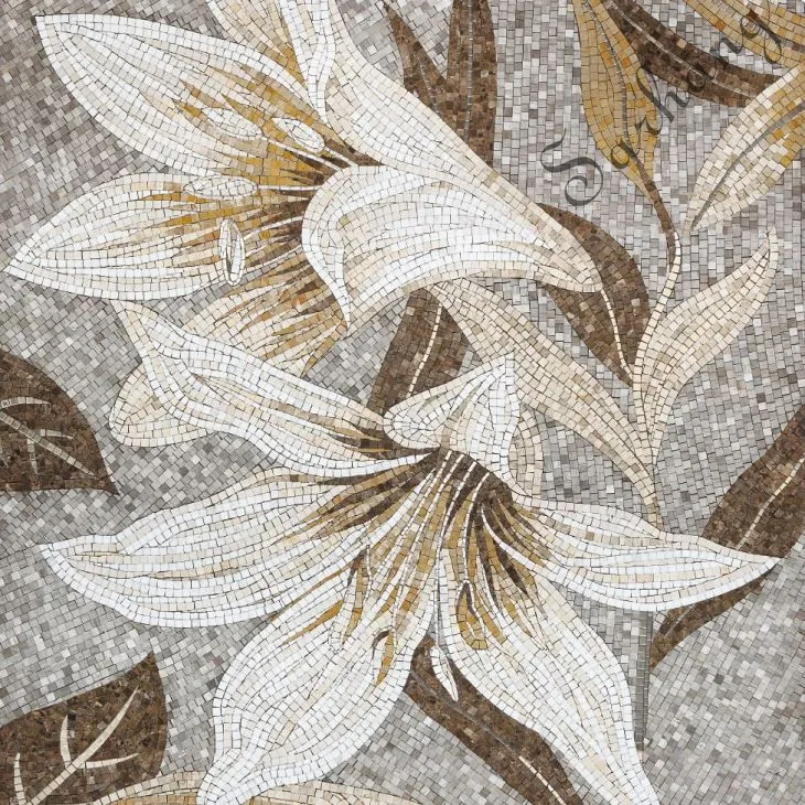 Each custom mural is a custom-designed work of art. The mosaicists have an unlimited palette of mosaic colors and tile types to choose from, including Venetian glass, Smalti, gold leaf, marble and stone. This limitless selection of materials, in combination with excellent mosaic craftsmanship, allows for stunning simulations of the various textures, colors and detailed shadings in the original artwork.