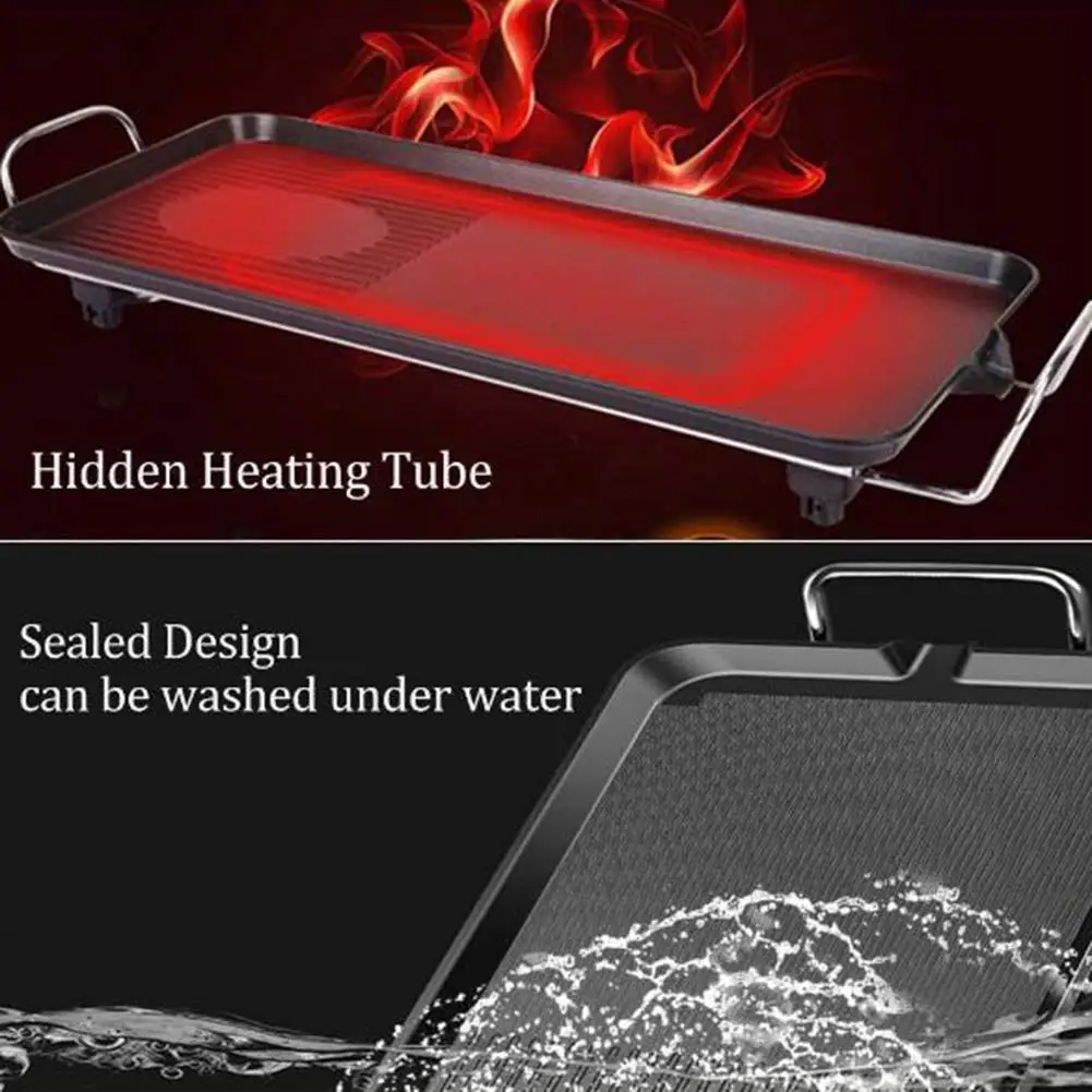 [ADJUSTABLE TEMPERATURE]Everyone will become a good cook with this electric griddle, as our electric table grill owns 5 temperature settings by controlling the adjustable thermostat; so that you can choose the most suitable temperature to cook various of food to the best dishes, such as beef, chicken, fish, vegetables, etc.