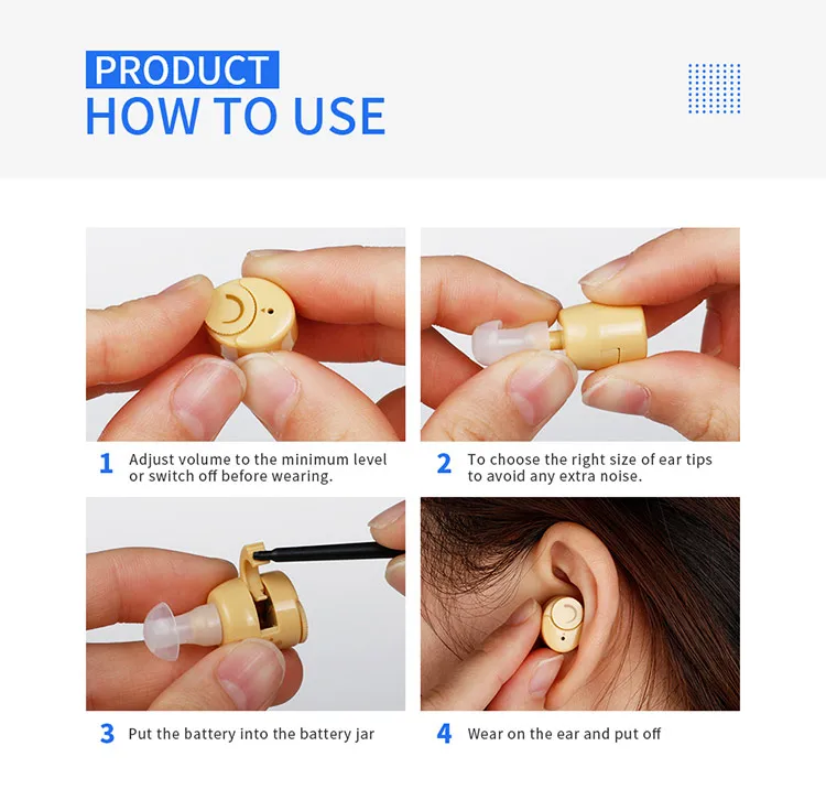 4.Mini ITC hearing aid type which can be hided in the ear and invisible;