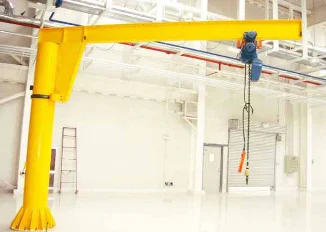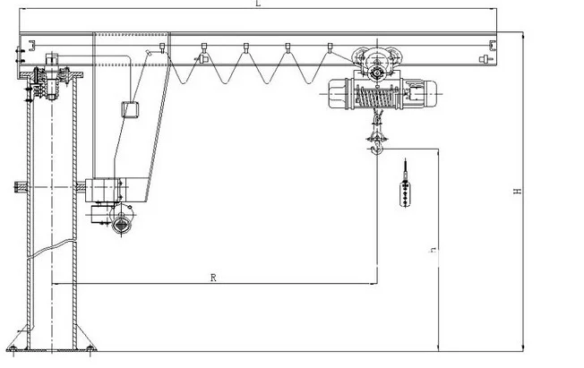 Under the cantilever, it equipped with rack, hois t running dolly output gear and rack driven of  ; occlusion, this could ensure the stability of the electric&n bsp;hoist.The hoist make shuttle running along the way of I-shaped beam, slewing of cantilever is finished by the& nbsp;motor to drive the reducer device.The cantilever is made of hollow steel structure, it is has a light weight, wide span, large lifting capacity, it is also more economic and durable.The jib crane which adopt special engineer plas tic wheels with rotary bear could reduce the abrasion, running more smooth .It could install in any position with ranges of rotation 180°, 270°, 345°, 360°.