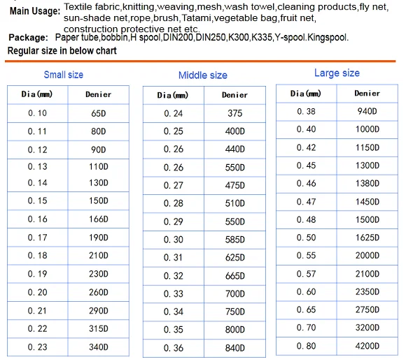 Product Name | 270D HDPE Polyethylene Monofilament Yarn | ||||