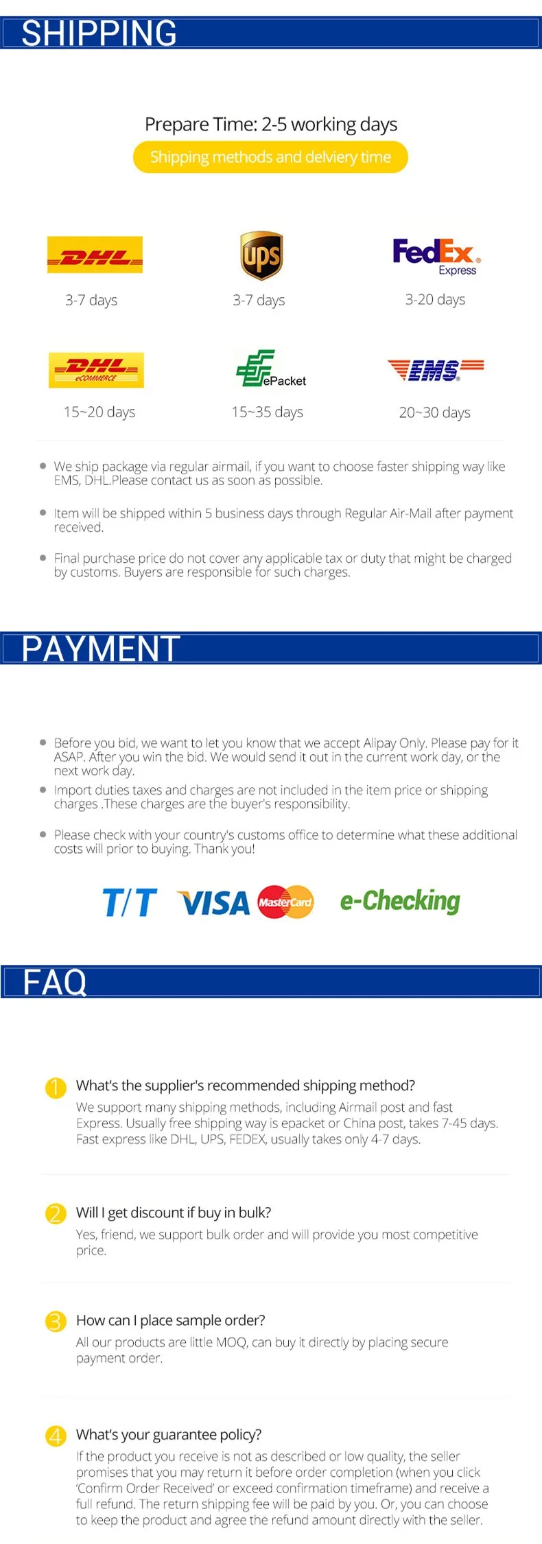 1. Order from "Start Order" and pay on line in alibaba,