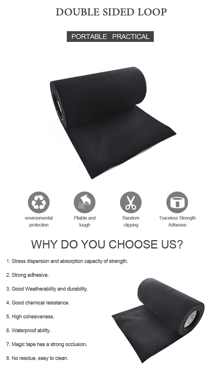 Application | 1) Used for clothing, shoes, hats, leather products, furniture, medical equipment, curtains, equipments for camping, seat pad, wires & cables and decoration accessories etc. 2) Suitable for: Affixing propaganda materials, displaying in exhibitions, positioning of office supplies, household commodities, cushions, car seats, etc. Easy fastening and removing; Fastening for table cloth, chair cover etc. It can be reused. |