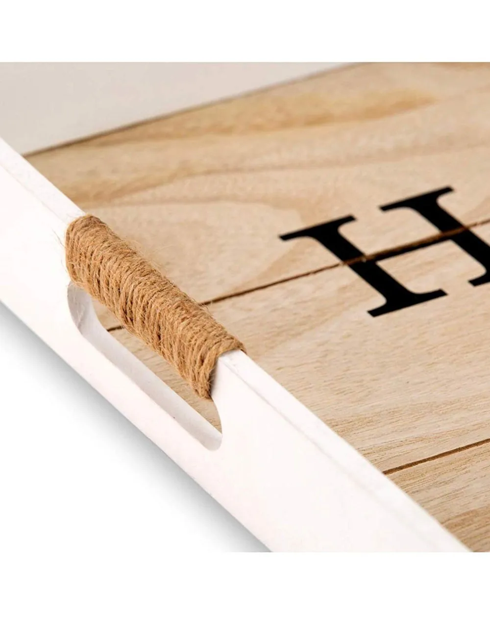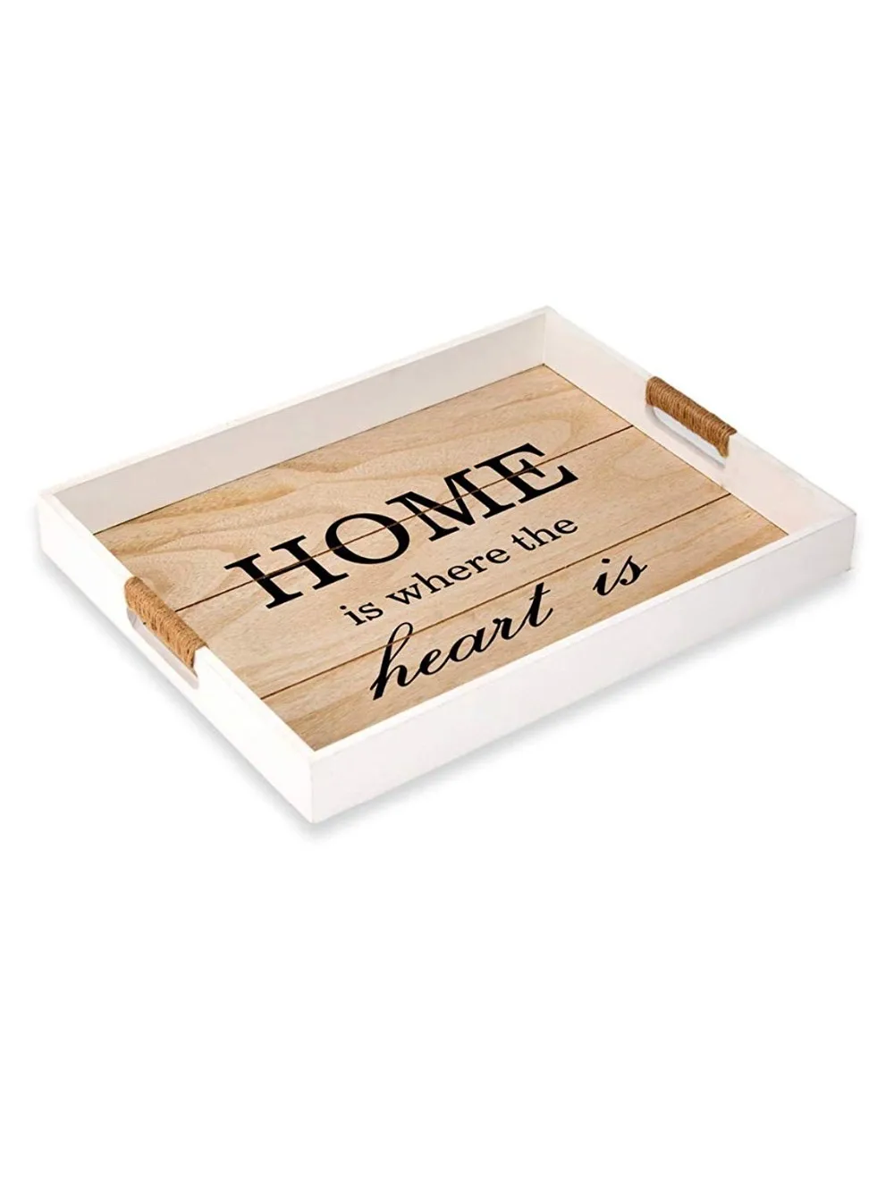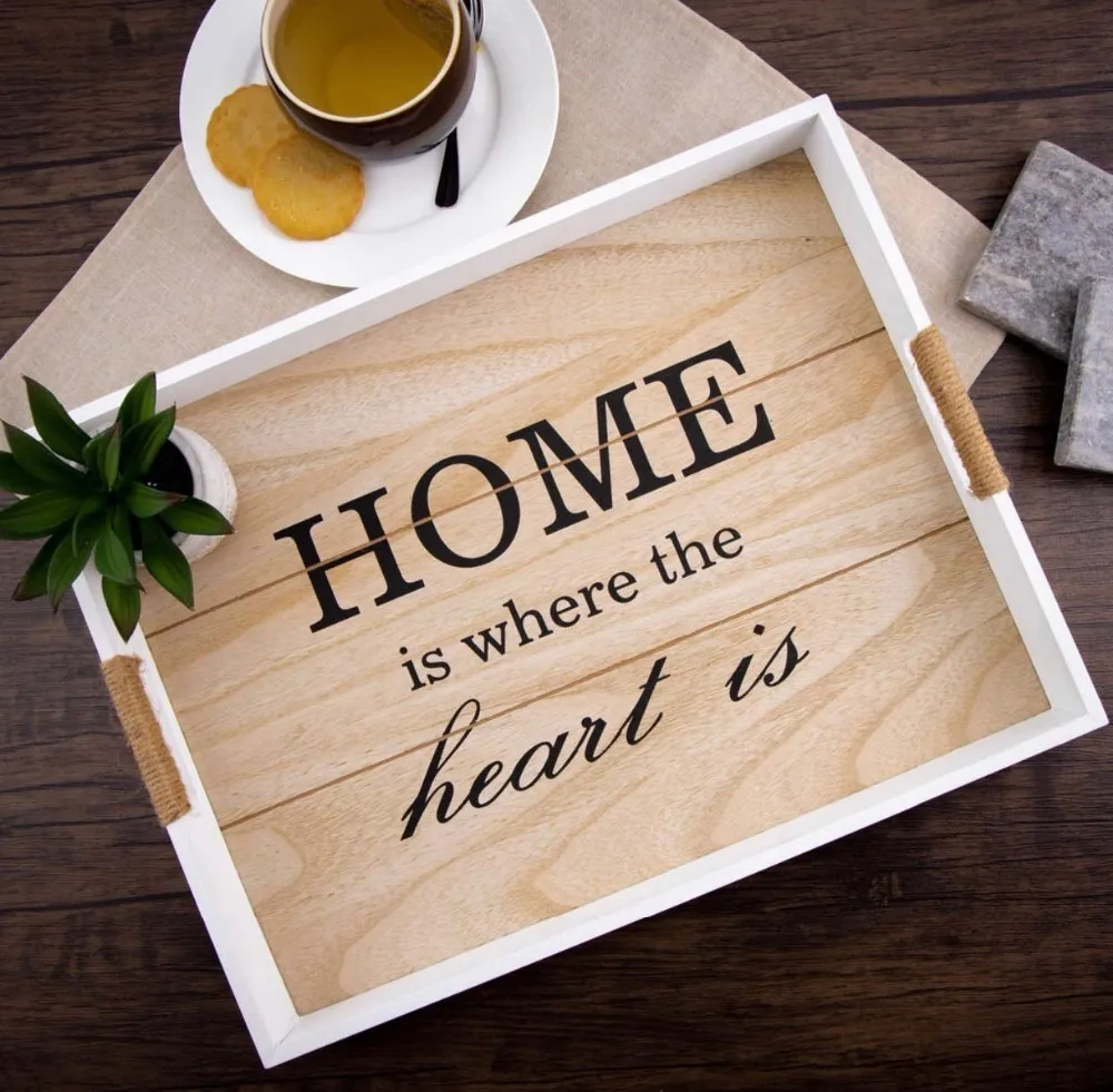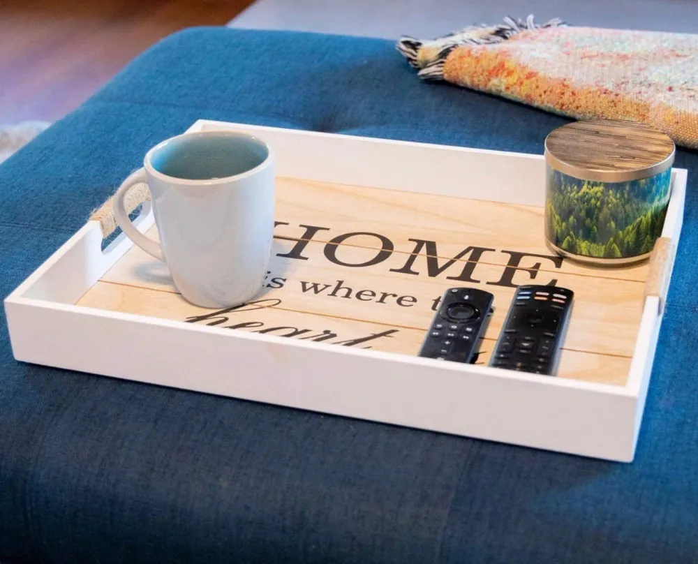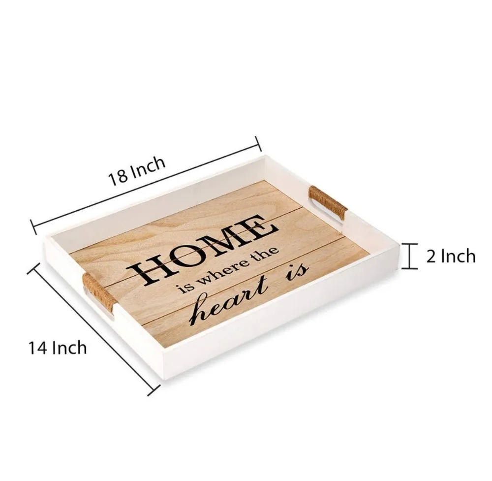 Decorative Wooden Serving Tray Ottoman Tray Coffee Table Decor Rustic Breakfast Tray w/Handles