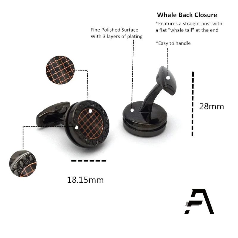 Product Name | Round Enamel Black Gunmetal Cufflinks |