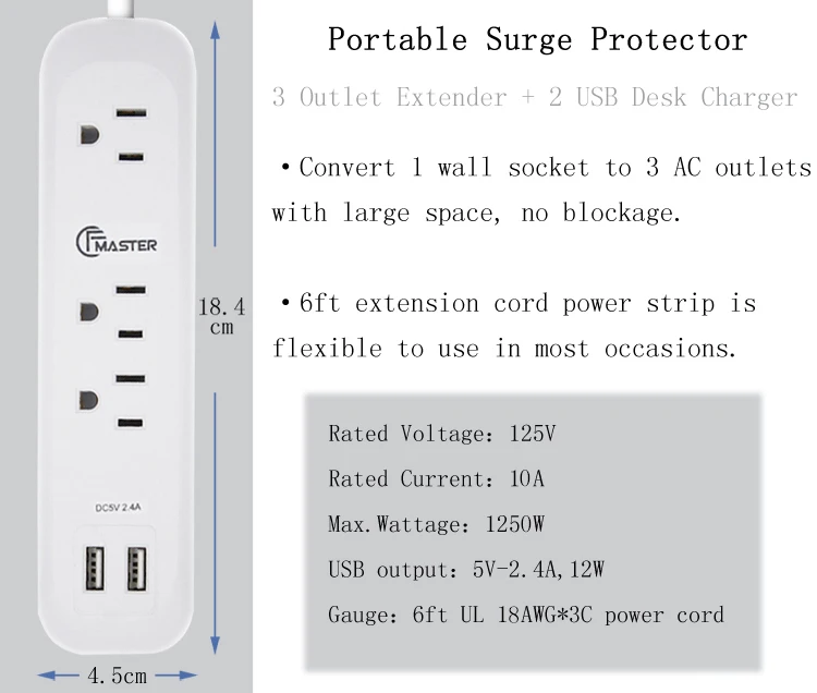 Product Name | 3 outlet surge protector power socket with USB port |