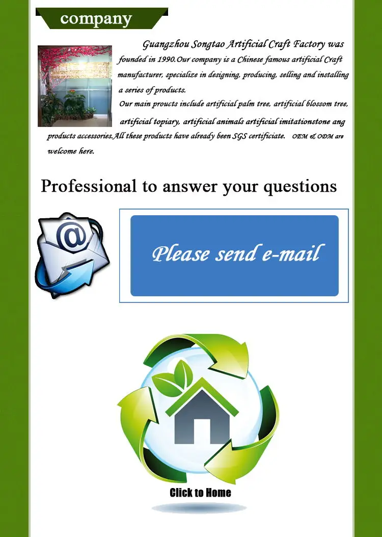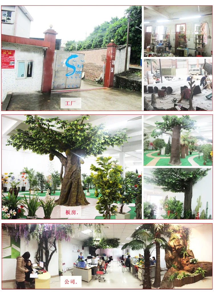 material | Leaf: silk fabric Trunk: Fiber grass , real bark, steel structure interior of trunk, and metal base | ||||||