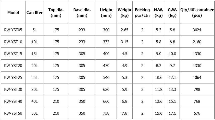 Specifications: 5L, 10L, 15L, 20L, 25L, 30L, 40L, 50L