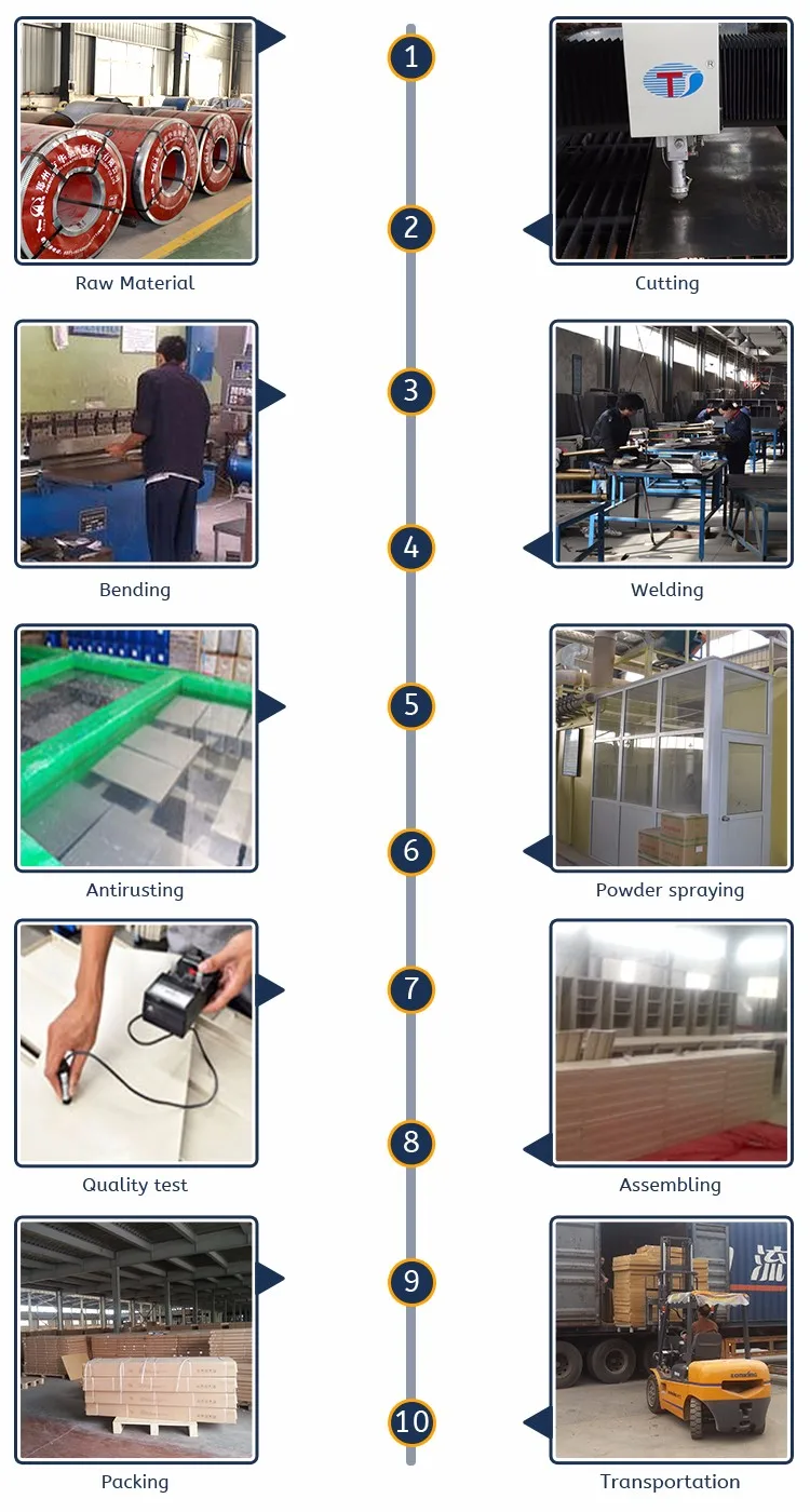 Coating: All the sheet material parts will go through 13 treatments of water cleaning, acid-washing, phosphating etc. The importing automatic spray facilities and top-quality powder promise the coating to be flat and smooth, non-toxic and smell.