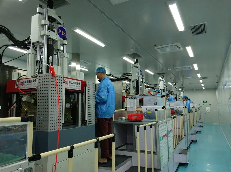We've owned 5000 square meters production workshop, 100,000 class clean production workshop, 26 sets Liquid Injection Molding Machines, 6 sets Solid Silicone Compression Molding Machines, 100,000 class clean Spraying workshop, beautiful office building and showroom, for now, our division has about 200 employees. The company has been certificated by ISO9001, ISO14001, ISO13485 and TS16949, and has obtained the certification of National High-Tech Enterprise and over 10 kinds of invention patents.