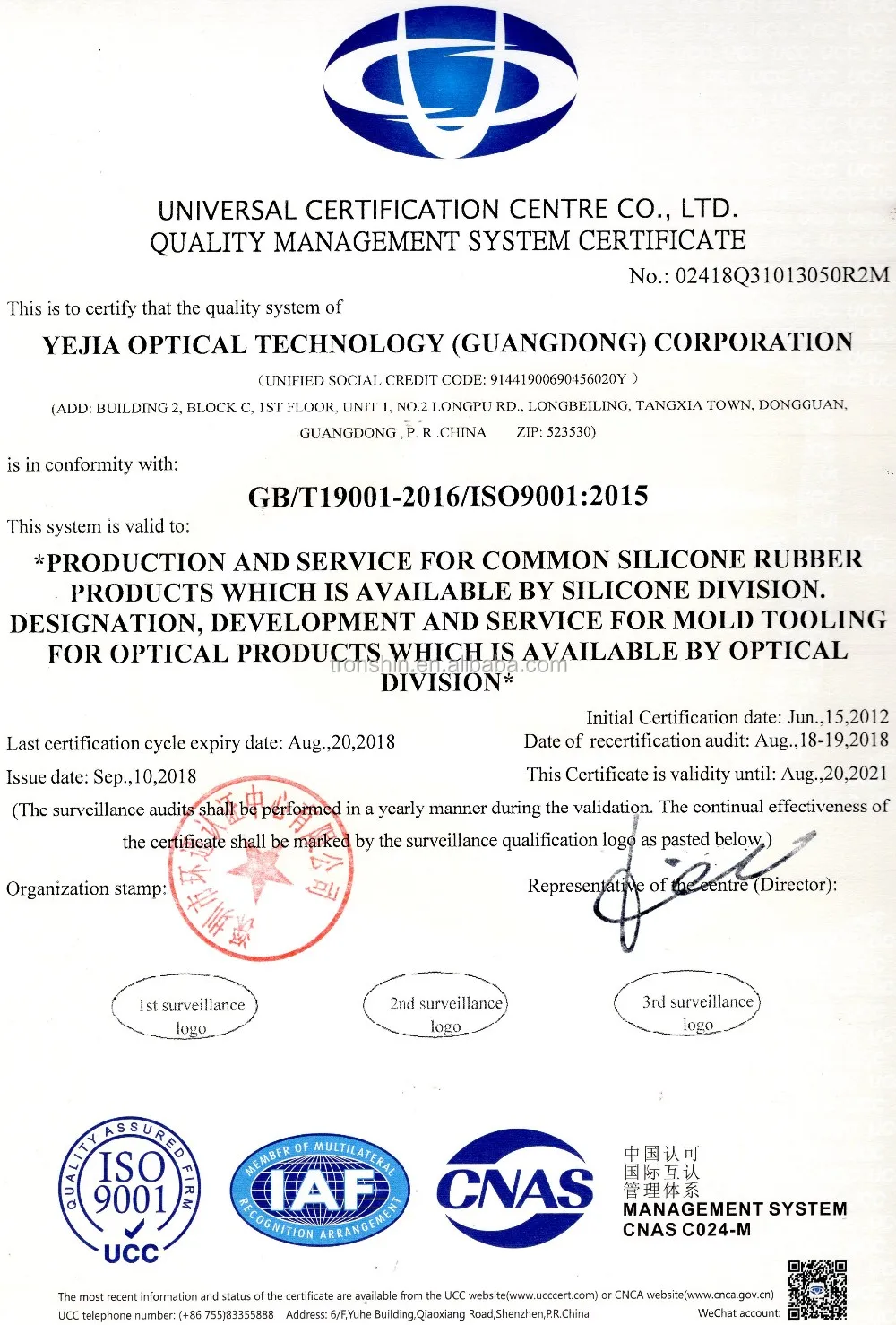 Yejia Optical Technology (Guangdong) Corporation (Silicone Division), the predecessor is TronShin Silicone Products Co., Ltd., which was founded in 2009, is a national high-tech enterprise of product design, mold making, manufacturing and marketing.