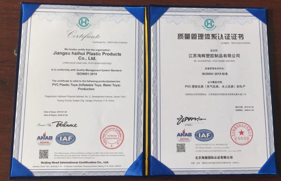 Blue Sea Plastic Products Co., Ltd. is a company which is the joint of trade and industry, we are devoted to developing and manufacturing all kinds of inflatable products for more than 15 years. Our factory located in Jiangsu province, with convenient transportation access. All of our products comply with international quality standards and are greatly appreciated in a variety of different markets throughout the world.