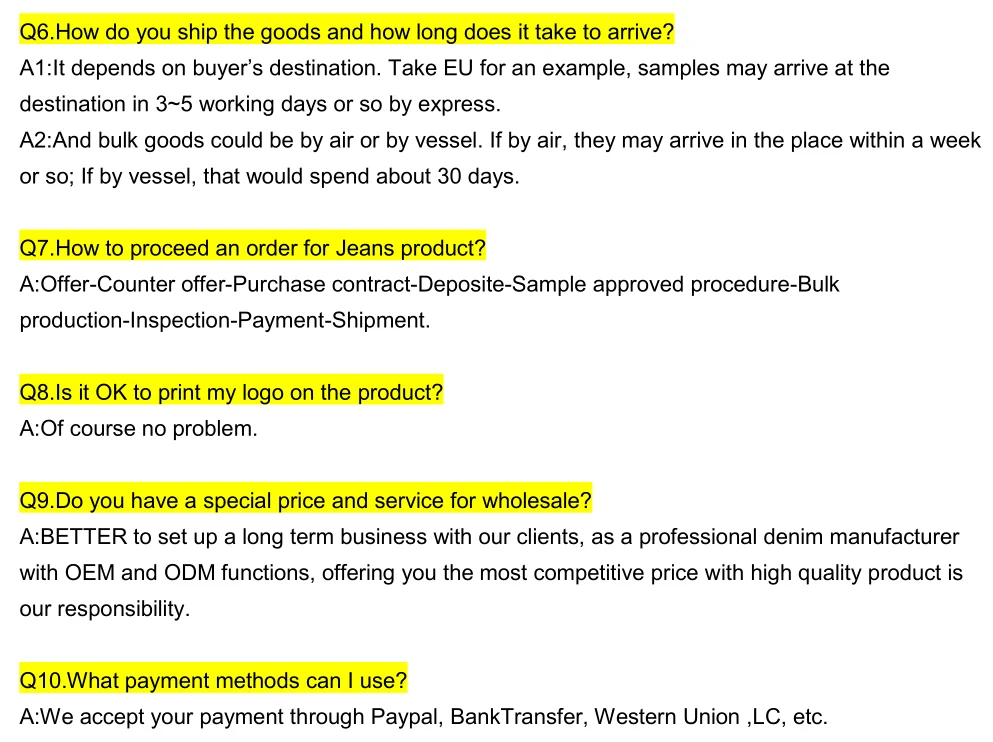 As the supplier of world famous company-BFC,BR,BM,ZOLLA,TIMEZONE,POLO,NEW YORKER, good quality, small and big order controlling, reasonable price are our most competitive abilities. We also offer one stop service for OEM and ODM order for men's jeans, women's jeans, baby's jeans, kids jeans, jeans short, jeans jackets, jeans jackets with rip and knit hook, men's T-shirt, men's shirts, polo, jackets, hoodies and sweatshirt, beach short, hawaiian shirt, dress, children's clothing, women fashion wear, sport wear ect. The product sells all over the world.Also we have rich experience to supply to TAOBAO,EBAY,AMAZON ect. online or offline sellers. We warmly welcome you to contact us now to START BUSINESS!
