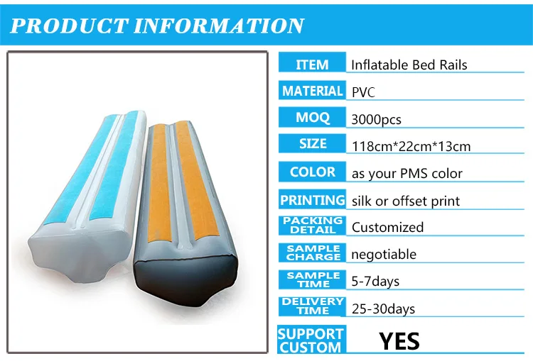 4,Easy to install: Only need to inflate by the air pump, then install it on the bed, the size is expanded 118cm multiply 22cm multiply 13cm. Suitable for most beds on the market.